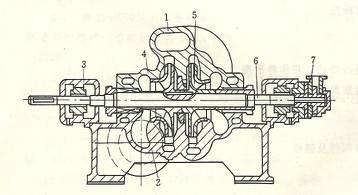 1泵盞,2泵體,3軸承體;4-軸套;5一葉輪;6泵軸;7一軸頭油泵