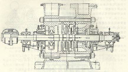 低壓鎘爐給水泵輸送液體的溫度一般在110℃左右,其結(jié)構(gòu)和一般分段式多級離心泵基本相同,大部分可以互相通用。對于中壓鍋爐給水泵,由于工作壓力和工作溫度比低壓的高,通常對軸封裝置的要求也較高,軸承除需要潤滑外,有的還用循環(huán)水冷卻。為了隔熱,有的在泵體外用鋼板卷成圓筒罩。泵的支承有的采用中心支承。